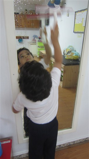 En cuanto al trabajo de los materiales, vimos a Diego Enmanuel muy laborioso limpiando el espejo y, más adelante, ayudo a Aireen Marie cuando ella quiso utilizar el atomizador del agua, bien hecho!!