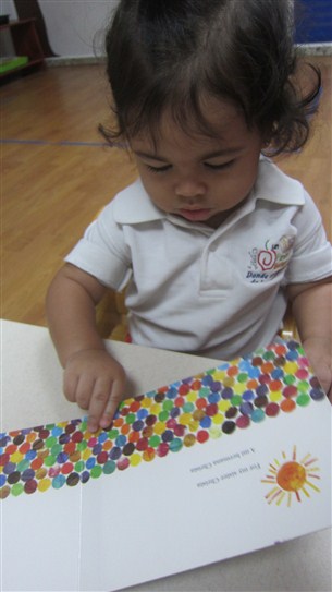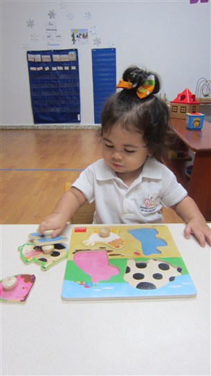 Así mismo, este pequeño estuvo al pendiente de cada amiguito que llegara para saludarlo y, cuando se percató de que Valery estaba en el salón, se le acercó y le paso un libro. Nuestro capullito de una vez, se puso a observar las imágenes del mismo y se esforzaba en pasar las páginas como toda una experta. También, trabajamos su agarre de objetos, utilizando el rompecabezas de animalitos que tanto le gusta.