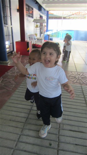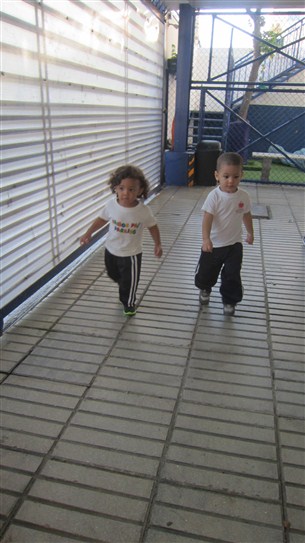 Montserrat, Dahlia, Gabriel, Thiago, Aireen y Elian corrieron con mucho entusiasmo y energía, mientras que Valery reforzaba sus movimientos de gateo y el arrastre junto al profe.