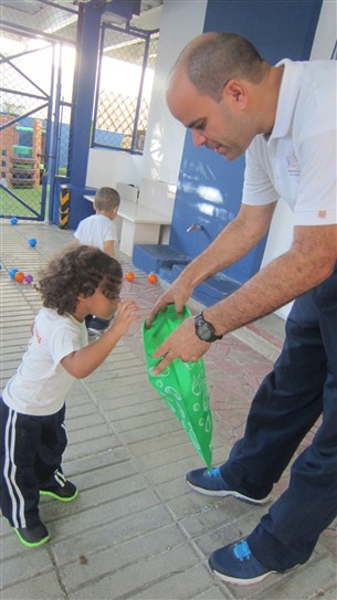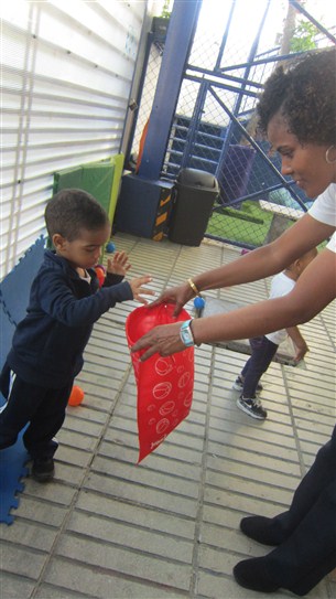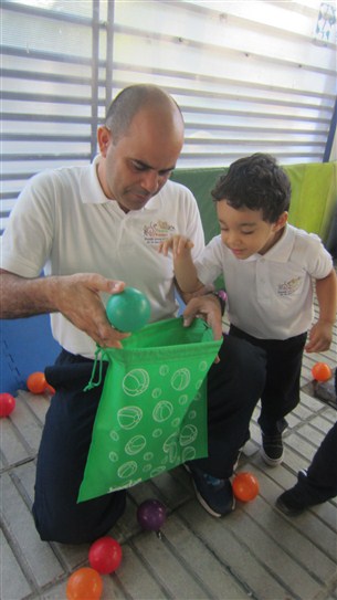 Más adelante, descansaron un momento, mientras el profe les explicaba la actividad que iban a realizar. “Waooooo” nos dijo Diego Enmanuel al ver un bolso lleno de pelotas de muchos colores que el profe les mostraba. El objetivo era ir detrás de todas ellas y clasificar las que eran de color verde y rojo, colocándolas dentro de unas fundas de este color. Nos encantó ver la dedicación y el empeño que pusieron nuestros chicos durante este momento, bien hecho!!