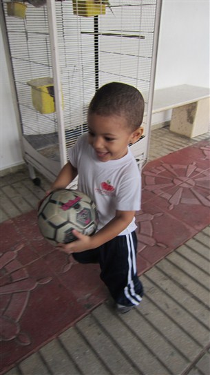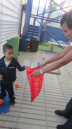 Luego de ayudar al profe a recoger las pelotas, tuvieron un tiempo libre para jugar con pelotas de diferentes tamaños y texturas. A Montse le encanto la de futbol, mientras que Dahlia y Gabriel jugaron juntos con la de voleibol y los demás corrían libremente tratando de alcanzar la de básquet para encestarla en el canasto con la ayuda del profe Tomas. Realmente fue una clase muy aprovechada por ellos!!