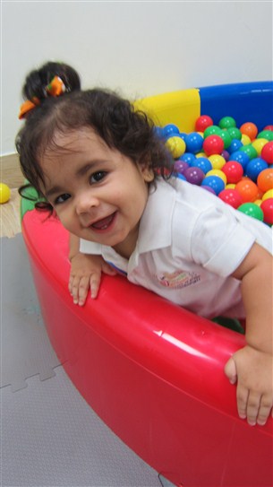 Dahlia se mostró muy contenta, agitando sus manos mientras revoloteaba las pelotas que tenía cerca y se reía a carcajadas. Malena tampoco se perdió de esta oportunidad y acompaño a su amiguita, llevando algunas de las pelotas de textura suave.