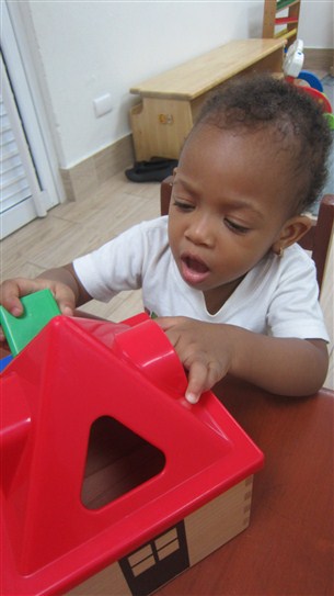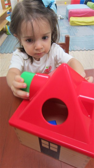 A Montserrat, Malena y Elian les llamo mucho la atención la casita para encajar las figuras geométricas y pudimos verlos en diferentes momentos manipulando este material. Es bueno comentarles que el mismo trabaja su orden, concentración, su coordinación óculo manual y también su capacidad de encajar y discriminar las diferentes figuras y sus colores.