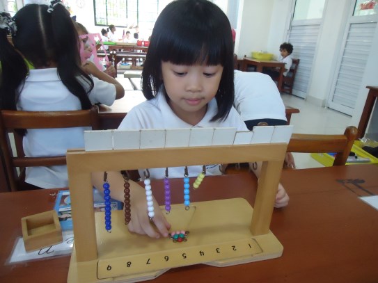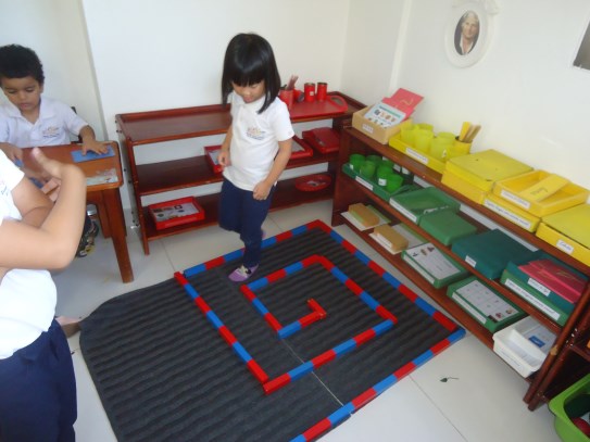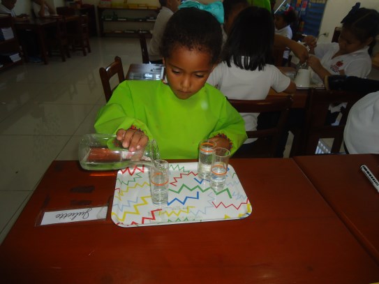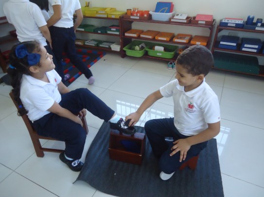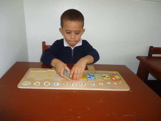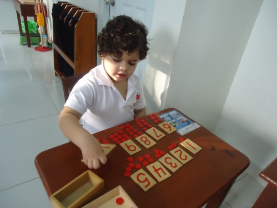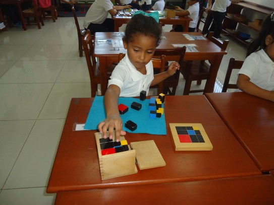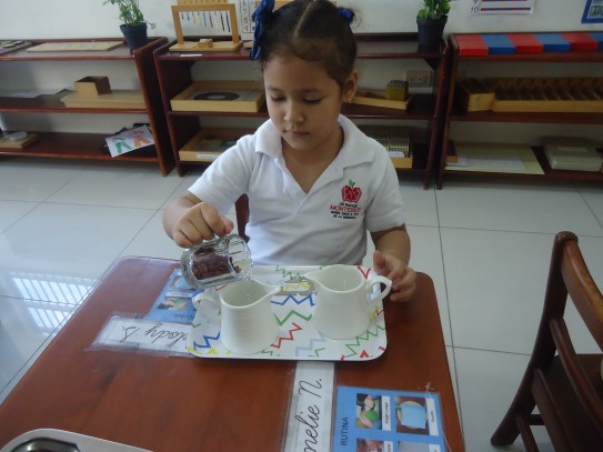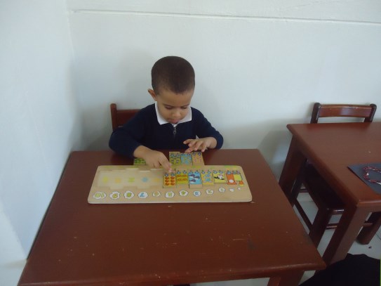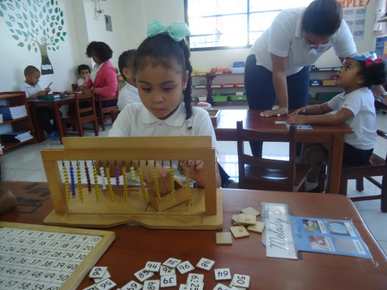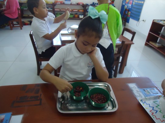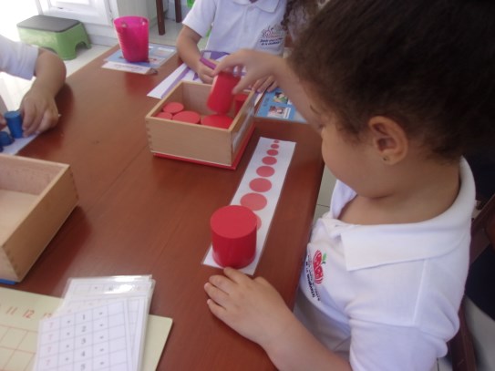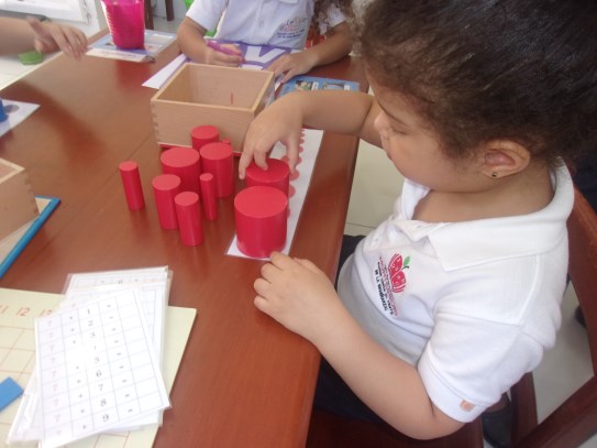 A la dulce María Gabriela le encanta trabajar los materiales ubicados en el área de matemáticas, en especial, la caja de husos Montessori, donde va contando cada número en secuencia y haciendo con ellos su correspondencia con ayuda de la maestra. ¡Nos encanta verte tan emocionada con tu trabajo!