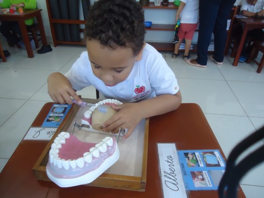 Y nuestro querido Eduardo José a quien le encanta fortalecer su sentido de higiene, pudimos verlo muy dedicado con el material de cepillar los dientes, trabajando con él su coordinación óculo-manual.