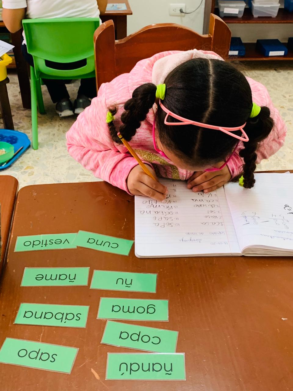 Gabriel sigue trabajando enriquecimiento de vocabulario con los módulos de sociales y naturales y en cuanto a la alfabetización seguimos en la presentación de fonogramas, leyéndolos en tarjetas y llevándolo a contexto de oraciones, al igual que Peter, quien ya esta tomando hasta dictados de los fonogramas presentados. Actualmente Peter se encuentra trabajando los fonogramas de las licuadas, todas las consonantes que se encuentre ligadas al fonema (l).