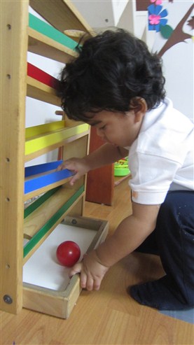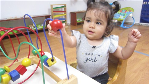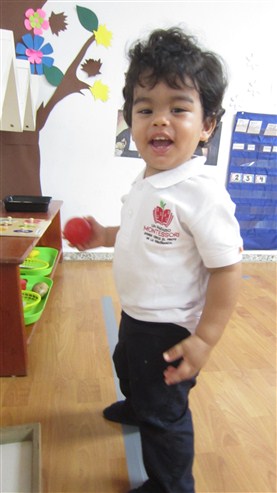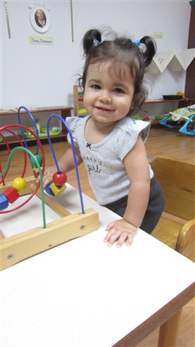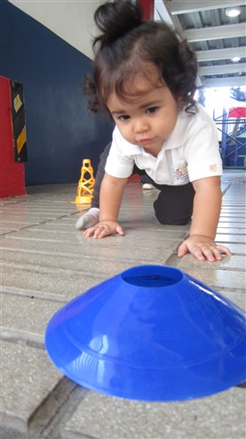Esta pequeña también llego muy enérgica y ya podemos verla haciendo solitos con más frecuencia. Por un buen rato, estuvo sentadita trabajando con su laberinto de cuentas y, cuando fuimos al área de movimiento, no perdió oportunidad de irse gateando para subirse a los primeros escalones de la escalera, bravo!!