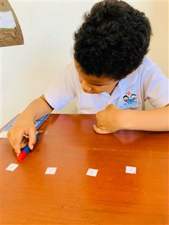 Que bueno es saber que nuestros tesoros podrán compartir con mas compañeritos, Camilo Ernesto ya parece un viejito en el Centro, se mueve a todos lados y busca entrar para saludar a todo el personal del colegio, ya nos conoce a todas, no solamente a las maestras sino al seguridad y al personal adm. Con camilo pasamos a la nomenclatura verde donde trabajamos los fonemas c-v-b-g-ñ y s, trabajando sus trazos y asociaciones a palabras iniciales, en este mismo orden tocamos las diferentes cajas de dichos fonemas las cuales tienen actividades que refuerzan esas asociaciones. Con los números entramos en la secuencia y correspondencia del 20 al 30.