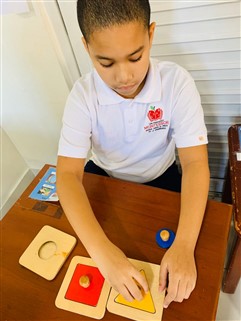 Carlos Omi ya tiene varios días que se ha integrado nuevamente con nosotras y ya arrancó nuevamente con la rutina de trabajo, poco a poco nos vamos adentrando después de varios días sin estar en el colegio, lo importante es que se mantenga en esa línea de rutinas, trabajo concreto y manipulación, le ayudaran mucho en la estructura que queremos establecer, es un niño muy alegre, activo y feliz, super amoroso y le gusta dar abrazos y besos, es un encanto, en estos momentos se encuentra manipulando números concretos del 0 al 9 y en todos los trabajos manipulativos y concretos le introducimos la secuencia de estos y las vocales, así como también las tablillas de colores que le encantan y los bloques lógicos que le ayudan a su concentración.