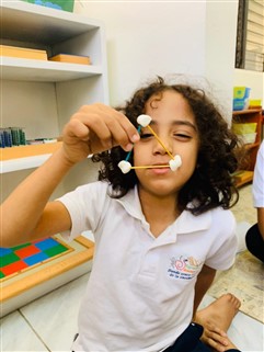 Peter encantado con las presentaciones de los poligonos, formando cada uno de ellos con palillos y malvaviscos, pero ahora también manipulándolos con los resaques de una manera concreta también, contando sus lados y tocando sus vertices.