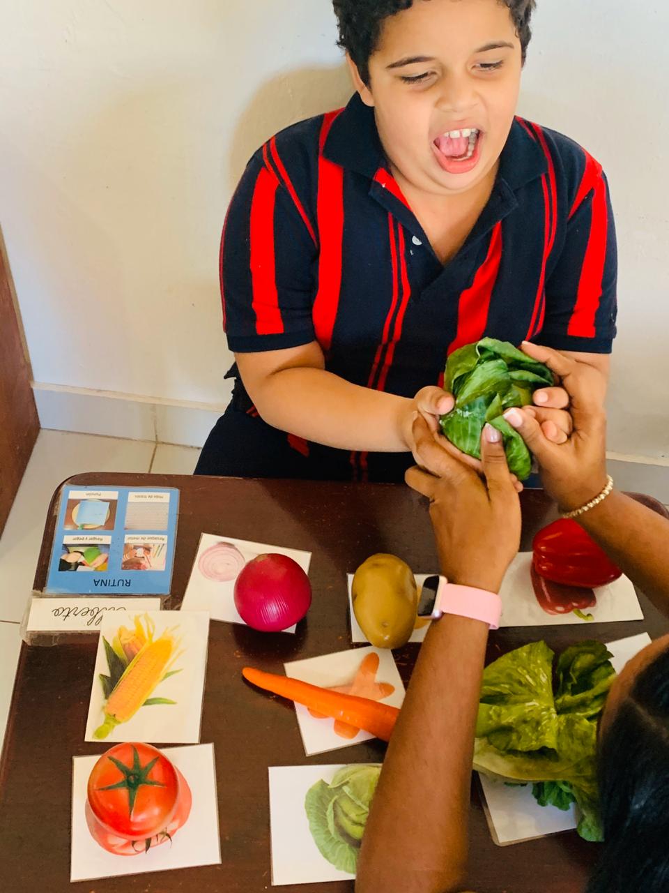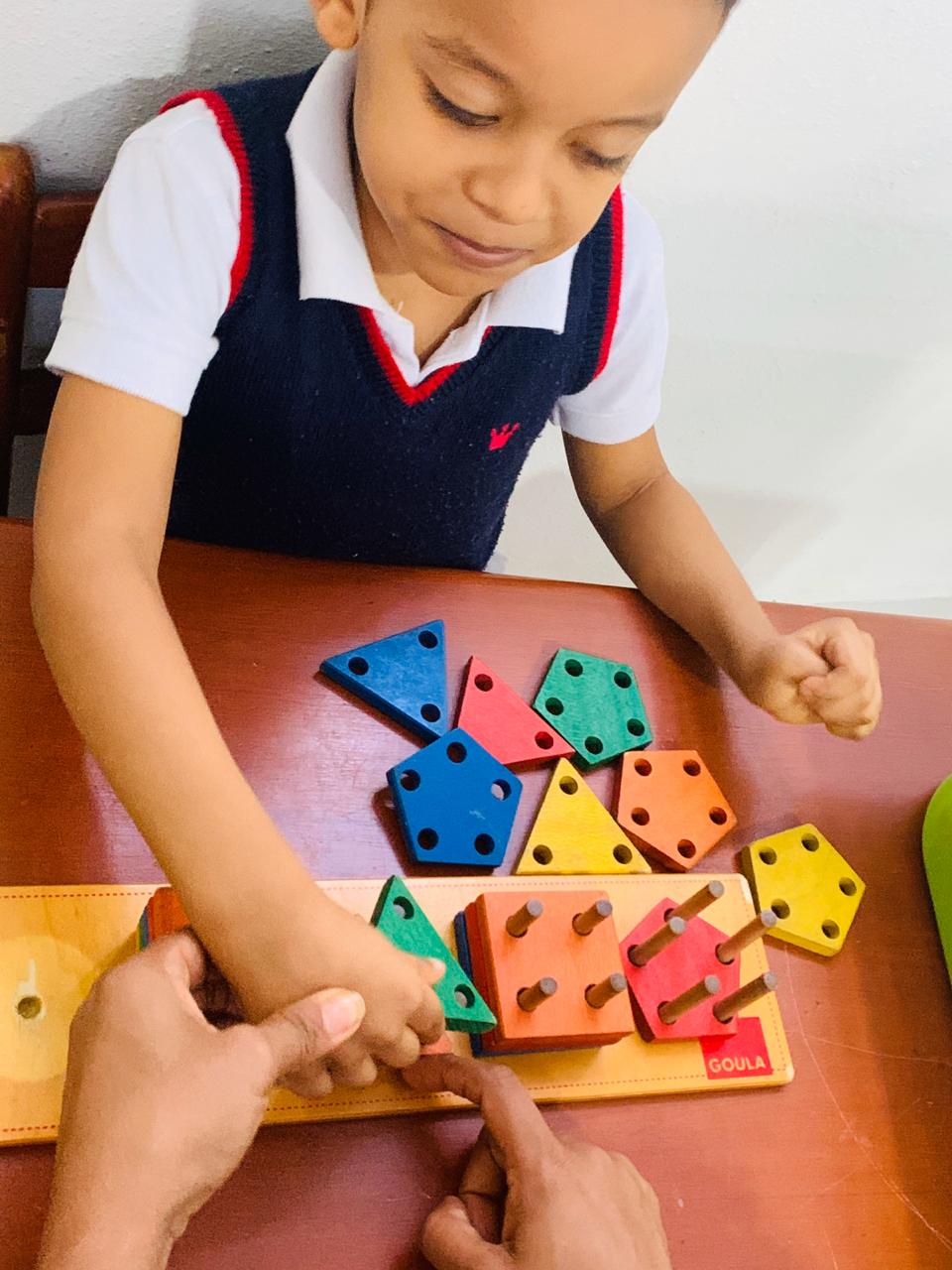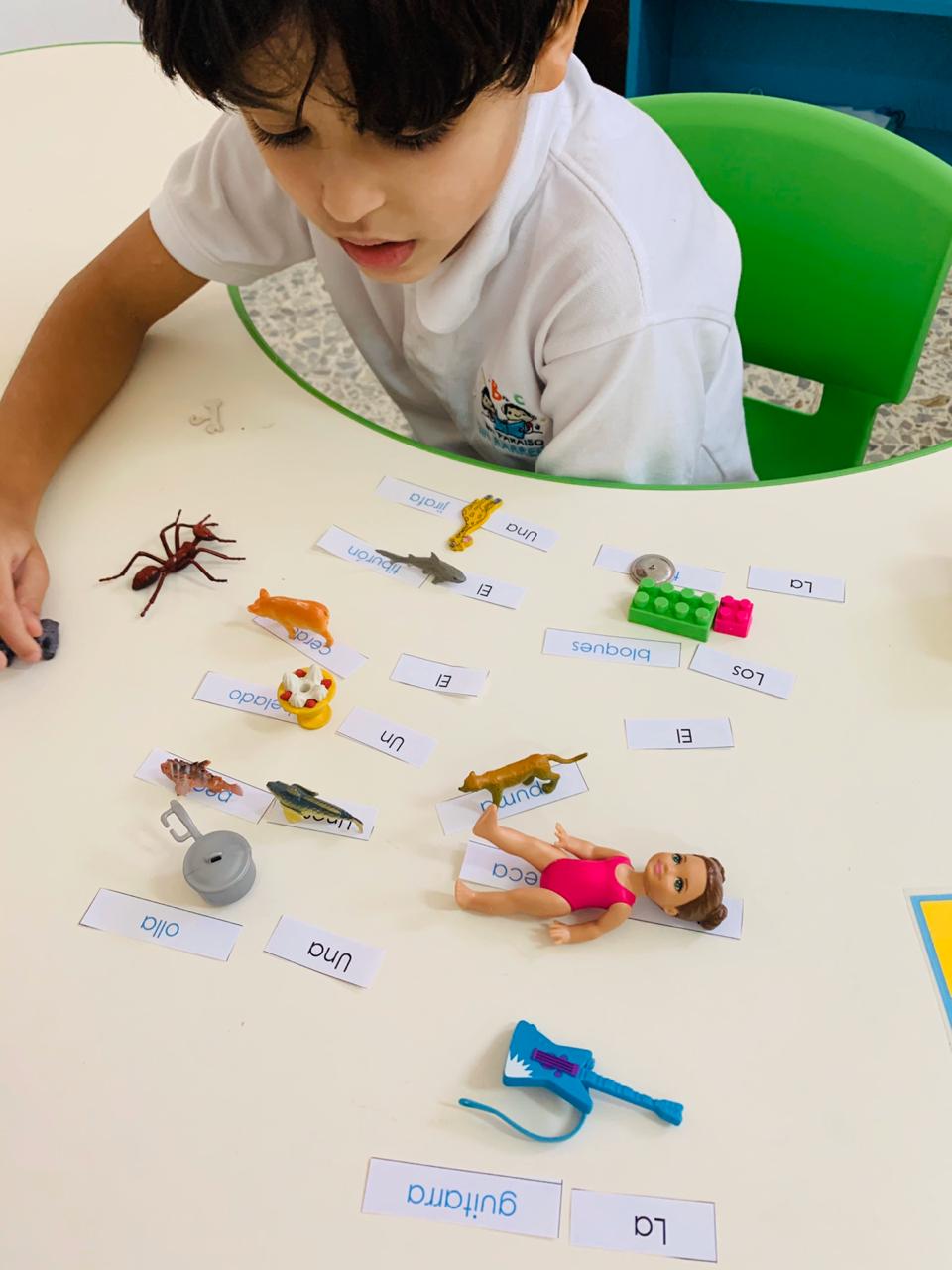Hola amados padres de Sin Barreras, nuevamente aquí con ustedes para hablar de nuestros amados tesoros, tenemos a Alejandro trabajando artículos…… que emoción!!! Lo trabaja tanto en el alfabeto móvil como también en la escritura en la mascota, en este mismo orden trabajamos también el orden del alfabeto y lo forma con las letras de madera una al lado de la otra para luego decirlas.